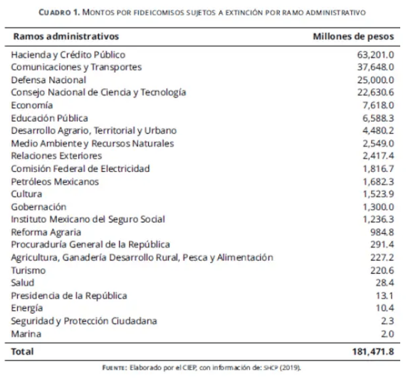 El decreto por el que se ordena la extinción o terminación de los fideicomisos públicos, mandatos públicos y análogos exceptúa aquellos fideicomisos que tienen como objeto el pago de pensiones, prestaciones laborales, fondos de estabilización, emergencias de salud y aquellos que mencionan estar en cumplimento de alguna ley vigente. Por lo tanto, una cuarta parte de los recursos en fideicomisos quedarán disponibles; es decir, 181 mil 440.3 mdp.