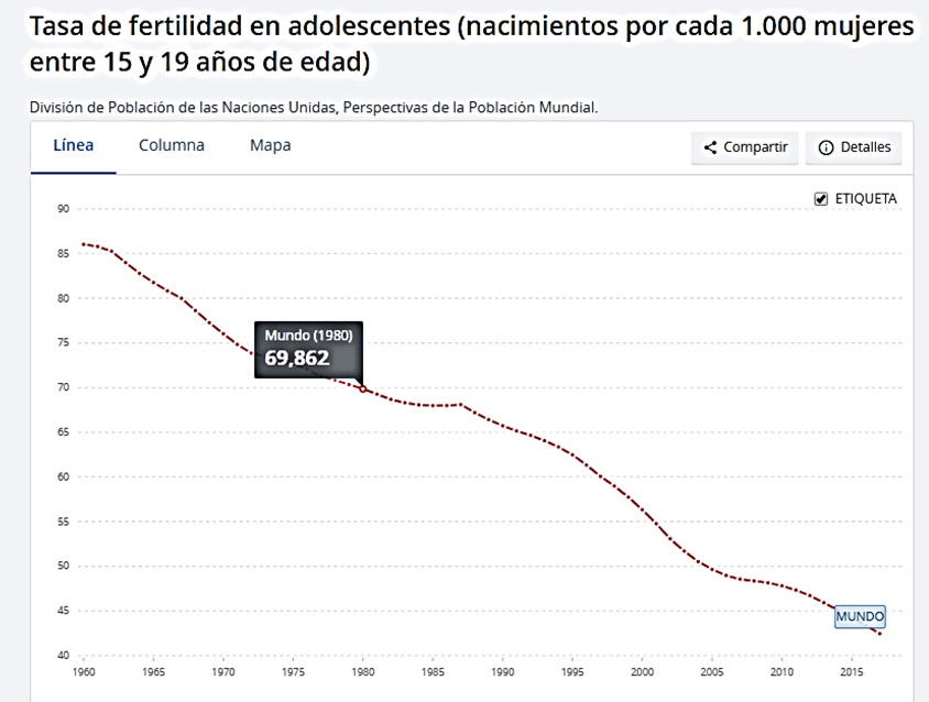Las cifras de 69 nacimientos por cada millar de adolescentes las tuvo el mundo, según la División de Población de las Naciones Unidas en “Perspectivas de la Población Mundial 2019” en 1980, es decir, hace 40 años, lo que habla del rezago de nuestro país en estos delicados temas. Actualmente la tasa de fertilidad mundial se encuentra cercana a los 40 nacimientos por cada mil adolescentes.
