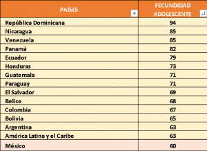 América Latina, con una fecundidad adolescente de 63, se encuentra muy rezagado en estos temas, República Dominicana se encuentra más cercana a los países de ingresos bajos, y una docena de países latinoamericanos superan el promedio calculado por el Banco Mundial. Mejores cifras se presentan en países como Chile, Brasil y Uruguay. A México lo encuentran reduciendo el fenómeno y le conceden encontrarse sobre los 60 casos.