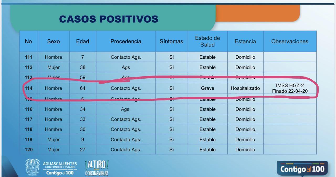 Por cuarto día consecutivo, Aguascalientes superó la cifra de nuevos casos de Covid-19 con 18 pacientes confirmados más, llegando a un total de 136 casos en en estado, este es [mark]un aumento del 500%[/mark] en comparación de los nuevos casos reportados hace una semana, lo que significa un muy importante repunte del contagio en la entidad.