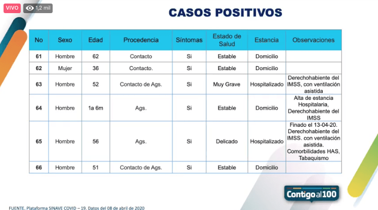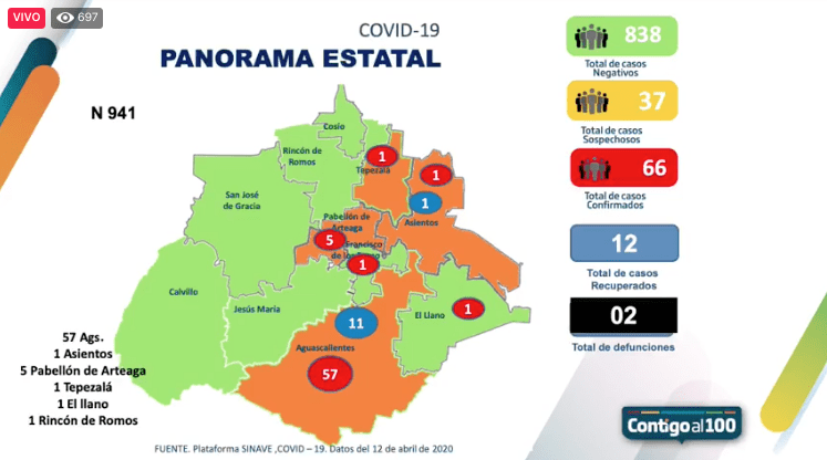 Hasta el momento, son 66 los casos confirmados de Covid-19 en Aguascalientes, sumando un caso nuevo en la ciudad capital y el municipio de Rincón de Romos, siendo ya 5 municipios del interior del estado los que presentan casos.