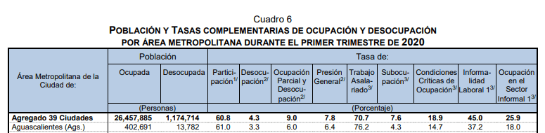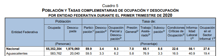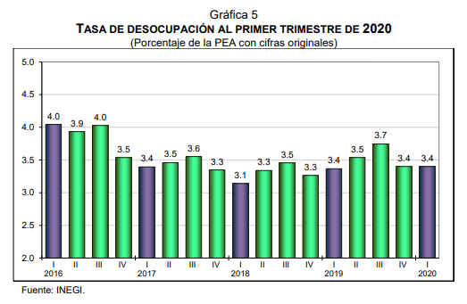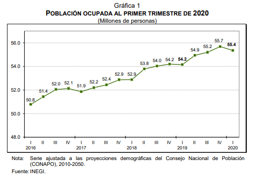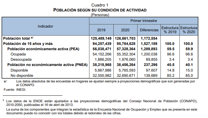 El Inegi presenta los resultados trimestrales de la Encuesta Nacional de Ocupación y Empleo (ENOE) para el trimestre enero-marzo de 2020: