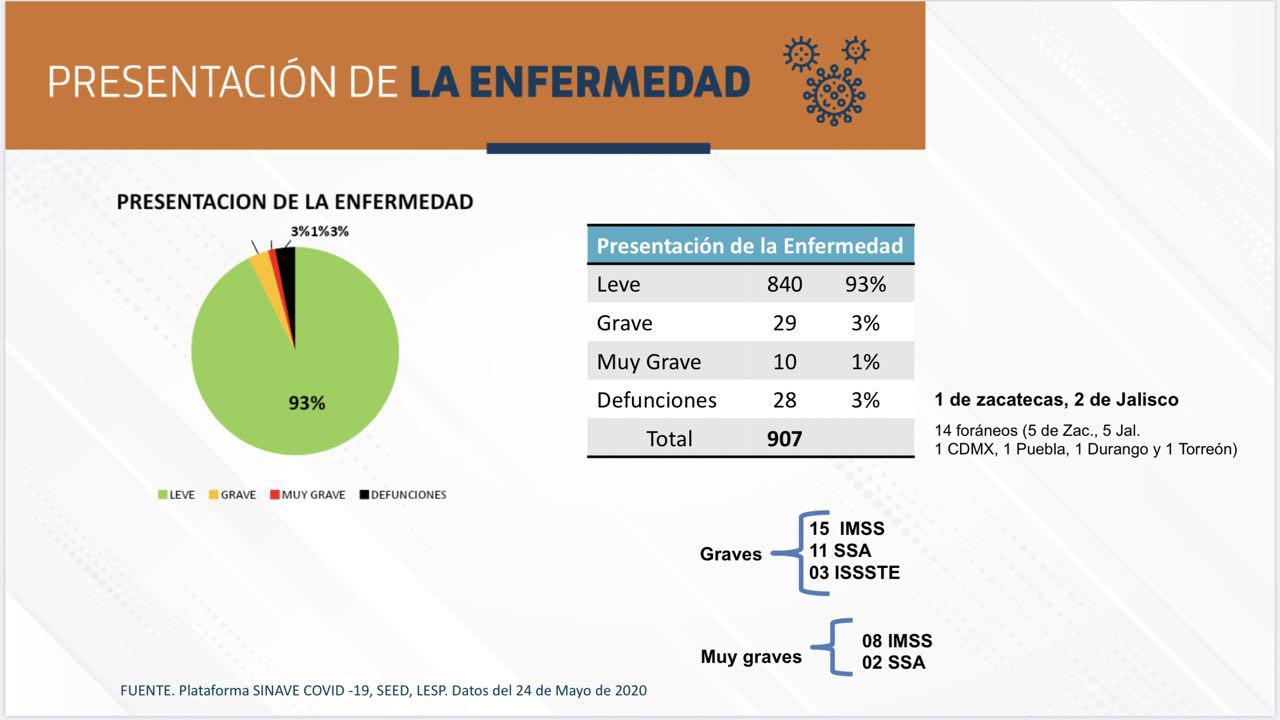 Aguascalientes rebasa ya los 900 casos confirmados de COVID-19 al 25 de mayo