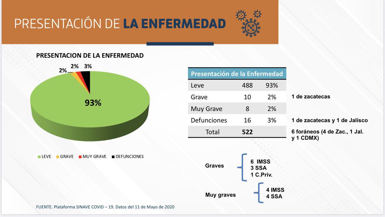 - Zacatecas, 160 casos confirmados