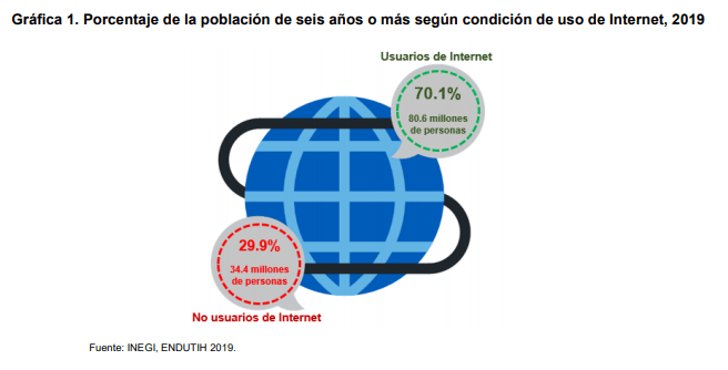 El 70.1% de la población de seis años o más en México es usuaria de Internet