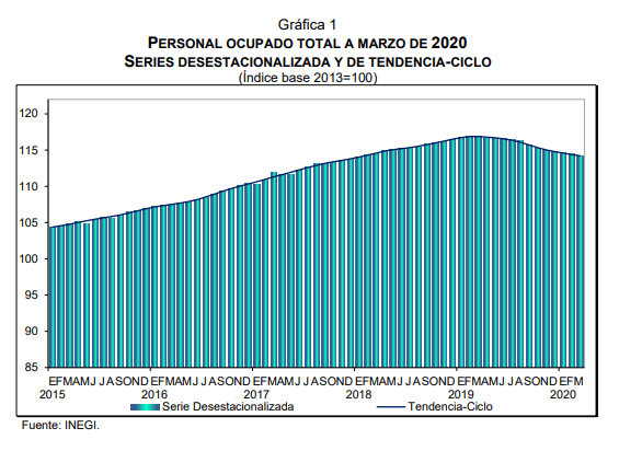 El Instituto Nacional de Estadística y Geografía (Inegi) informa que con base en los resultados de la Encuesta Mensual de la Industria Manufacturera (EMIM), durante marzo del presente año, el personal ocupado total del sector manufacturero registró una caída de (-)0.3% frente al mes inmediato anterior, con datos ajustados por estacionalidad. La captación de la Encuesta Mensual de la Industria Manufacturera (EMIM) correspondiente al mes de marzo, se realizó en los tiempos establecidos mediante Internet y asistencia telefónica con el fin de evitar el contacto presencial.