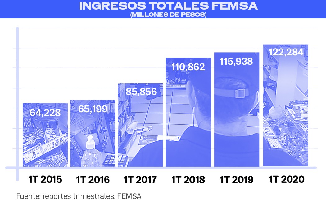 En el primer trimestre del año, OXXO registró ingresos por 45 mil 620 millones de pesos, 10.6% más que en igual periodo de 2019. Y no se diga en el consolidado de FEMSA, en el que las ventas suman 122 mil 284 millones de pesos y una utilidad neta de 9 mil 112 millones, 136.7% mayor.