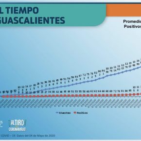 Diariamente, la Secretaría de Salud de Aguascalientes presenta este indicador graficado junto con datos que son mucho más significativos que la cifra de contagios de covid-19 confirmados en el estado, por lo que no se aprecia en su totalidad el repunte de casos en la entidad, pues los compara tanto con los estados que presentan el mayor número de contagios en el país, como con el número de pruebas realizadas.