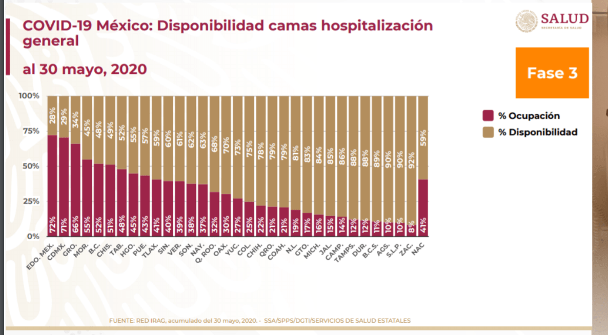 Aguascalientes está en empate con San Luis Potosí, al tener disponibles el 90% de las camas de hospitalización para pacientes con COVID-19, mientras que Zacatecas (uno de los estados que menos prueba realiza) sería el primer lugar 92%.