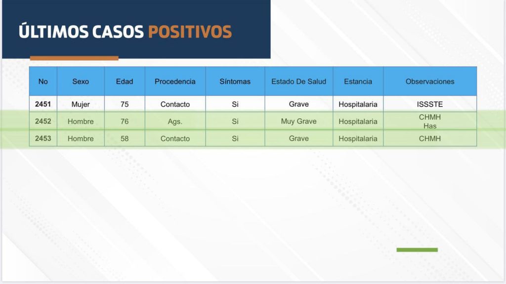 70 nuevos casos y 3 muertes más por COVID-19 en Aguascalientes. Al 23 de junio son ya 2 mil 591 contagios acumulados en el estado