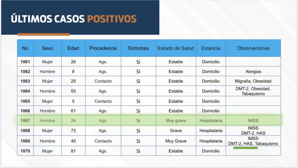 Aunque Aguascalientes cuenta capacidad hospitalaria, esto es relevante debido a que el virus está alcanzando a la población de riesgo y que conforme a la tendencia de hospitalización, el estado podrá bajar su nivel de riesgo en el Semáforo de Sanitario Federal.