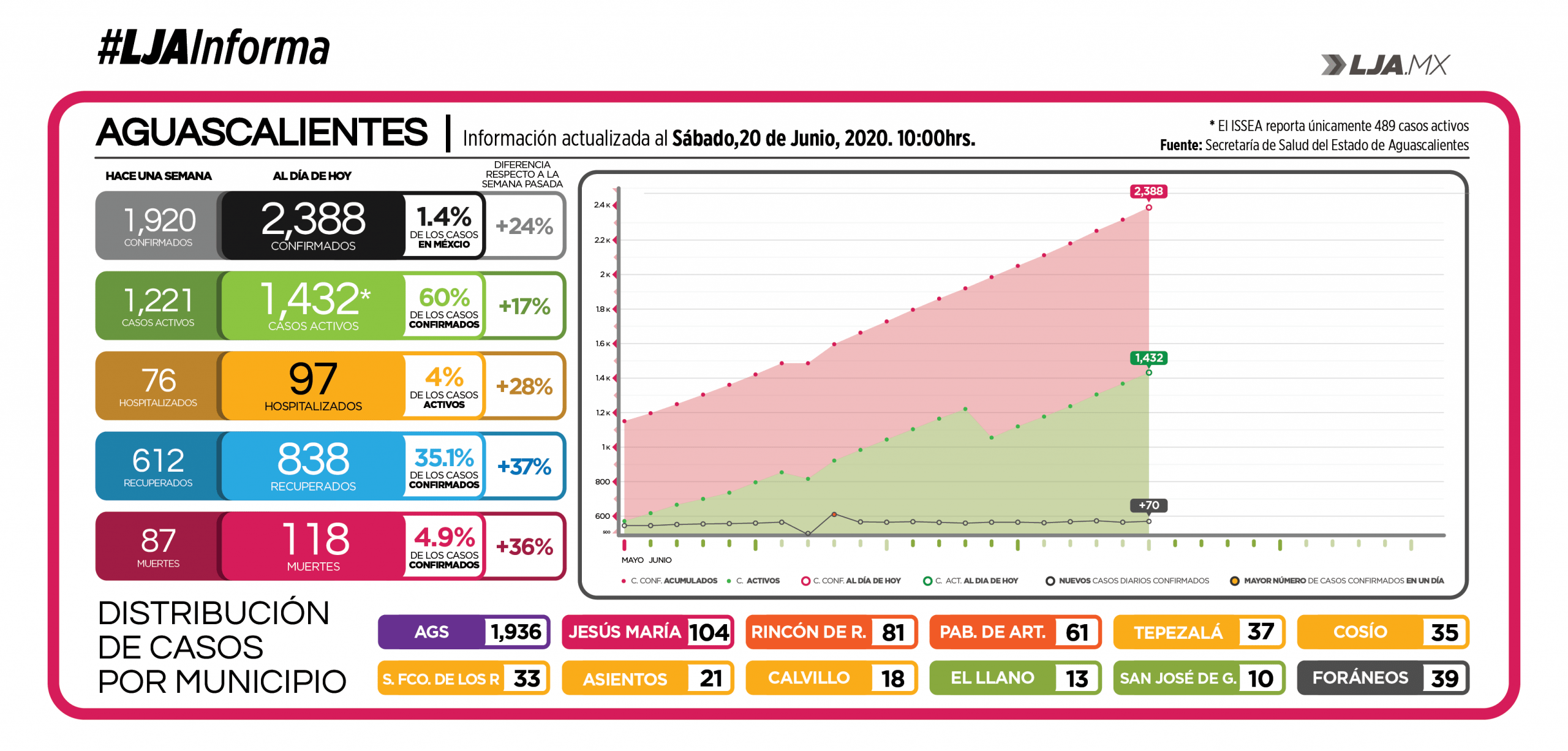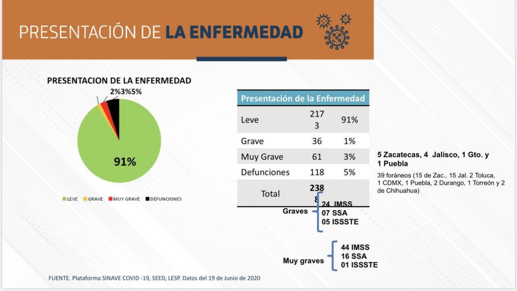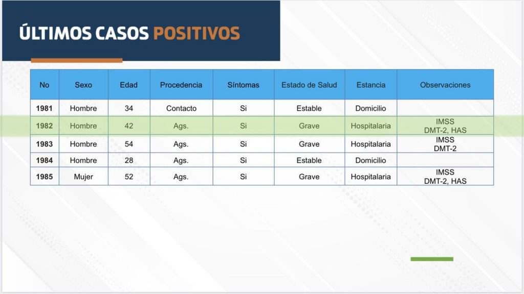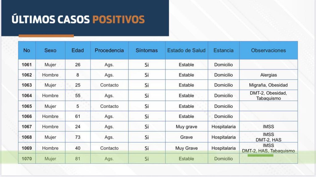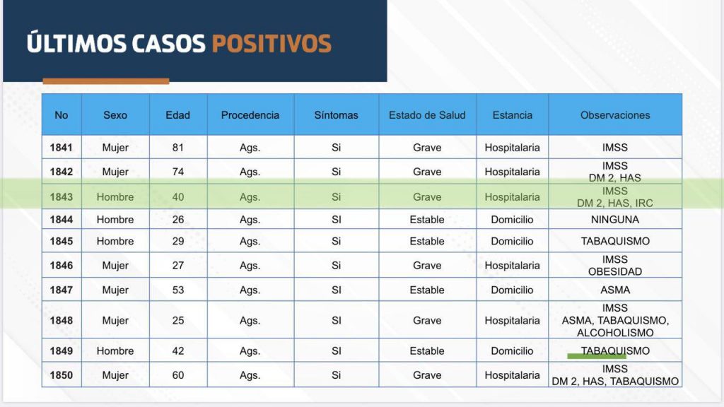 Aguascalientes suma 6 muertes y 70 nuevos casos de COVID-19. Son ya 2 mil 388 contagios acumulados al 20 de junio