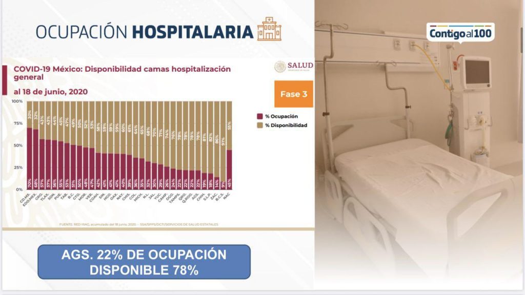 [ev_quote cite=”” align=”right” fontcolor=”#ffeb3b” bgcolor=”#d60057″]Fue a inicios de esta semana que la proporción entre casos graves y críticos se revirtió, superando los casos críticos a los graves de manera abrupta[/ev_quote]El Instituto Mexicano del Seguro Social es el centro de salud que sigue reportando la mayor carga de hospitalizaciones con un total de 68 camas ocupadas (24 regulares y 44 de terapia intensiva), seguido por el Hospital Miguel Hidalgo con 23 camas (7 regulares y 16 de terapia intensiva) y el ISSSTE con sólo 6 camas (5 regulares y 1 de terapia intensiva). Esto representa, según el reporte de la Secretaría de Salud Nacional, una ocupación hospitalaria del 40% para camas regulares y del 22% para camas de terapia intensiva