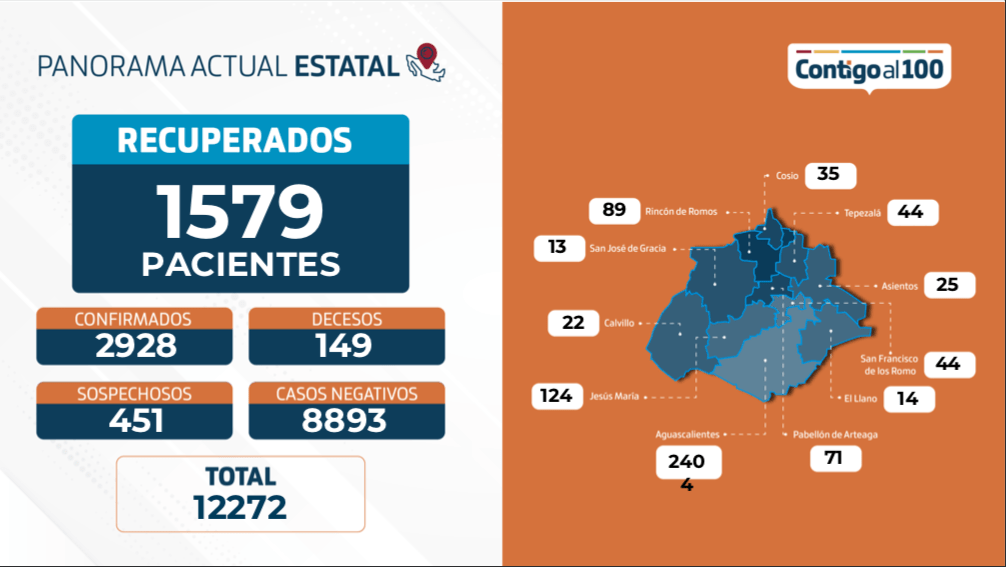 Al 28 de junio, Aguascalientes acumula ya 2 mil 928 casos confirmados de COVID-19 y 149 decesos