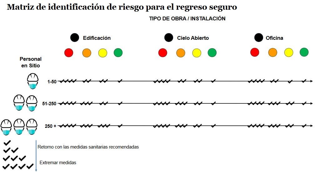 También pusieron a disposición de las empresas un semáforo con el cual se podrán guiar para atender las medidas sanitarias y adaptar la forma de trabajo, de tal forma que los riesgos sean mínimos.