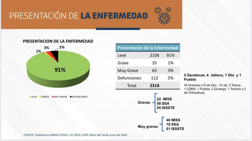 [ev_quote cite=”” align=”left” fontcolor=”#d60057″ bgcolor=”#ffeb3b”]El ISSEA ya ha confirmado casos en donde un paciente permanece enfermo (con el virus activo) hasta por un mes[/ev_quote]De estos 2 mil 318 casos de pacientes de COVID-19 acumulados en el Estado, el Instituto de Salud del Aguascalientes reporta solamente 489 pacientes activos, 838 recuperaciones y un total de 112 decesos, dándonos un total de sólo mil 439 pacientes que cuentan con seguimiento médico, es decir, al día de hoy, hay 879 pacientes de COVID-19 que el ISSEA no reporta dentro de su desglose de casos, desconociendo por completo su estado de salud actual y el estatus del virus en su cuerpo, lo que puede llegar a representar un grave riesgo de contagio.