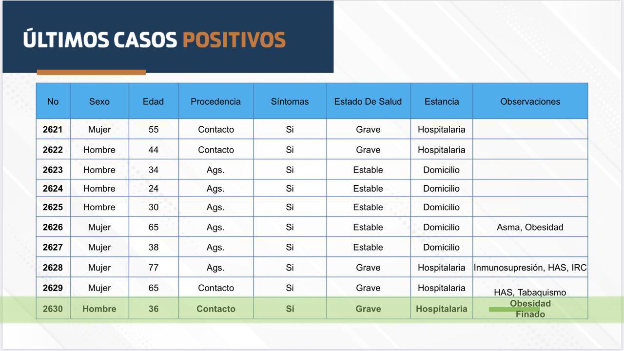 Confirman 69 nuevos casos y 1 muerte más por COVID-19 en Aguascalientes, al 24 de junio son ya 2 mil 660 casos acumulados en el estado