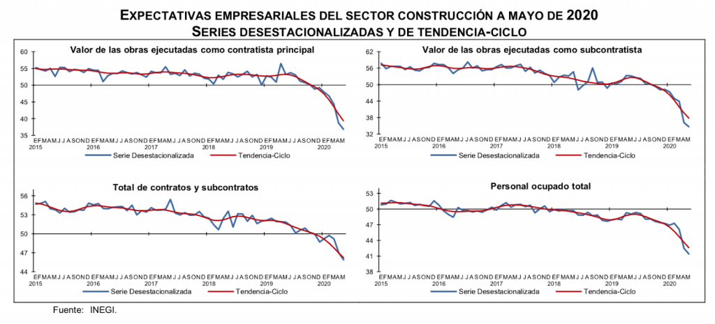 Las Expectativas Empresariales del Sector Construcción en mayo del año en curso con datos ajustados por estacionalidad, observaron el siguiente comportamiento: