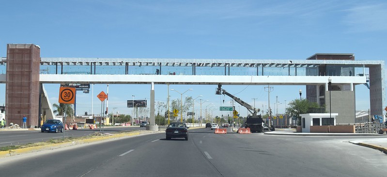 Y no se escapa el “puente peatonal” recién inaugurado frente al hospital. Para empezar, no funciona, incluso empeoró la circulación sobre la banqueta y ciclovía poniente en Gómez Morín, generando un sitio potencial para accidentes viales y, asimismo promoviendo el exceso de velocidad por parte de los automotores. Vale la pena mencionar su impacto en el paisaje, específicamente en el horizonte. Me parece que la linealidad del complejo se puede vivir similar a un río, con esto me refiero que, al caminar, correr o andar en bicicleta es como ir por un malecón (excepto por la incomodidad que generan los autos), pero el principio es el mismo. Tenemos una amplia perspectiva donde la tierra y el cielo se encuentran en el horizonte (si se que es una visión super cursi). Pero creo que esta propiedad del sitio era valiosa, solo que ahora se interrumpe por un puente, sin propuesta arquitectónica y además cargado de publicidad (¿O propaganda?) de las autoridades responsables de su construcción. La ciudad es paisaje ¿Qué mensaje queremos que nos transmita?