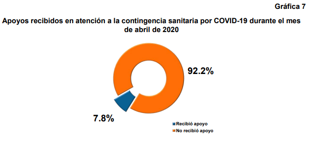 El 93.2% de las empresas sufrió alguna afectación económica, de 1,873,564 empresas, sólo el 7.8% obtuvo algún tipo de apoyo, mientras que el resto, 92.2%, no recibió ayuda de ninguna índole