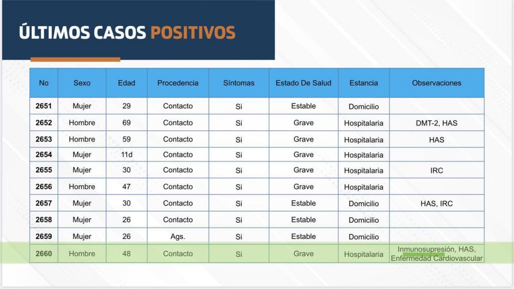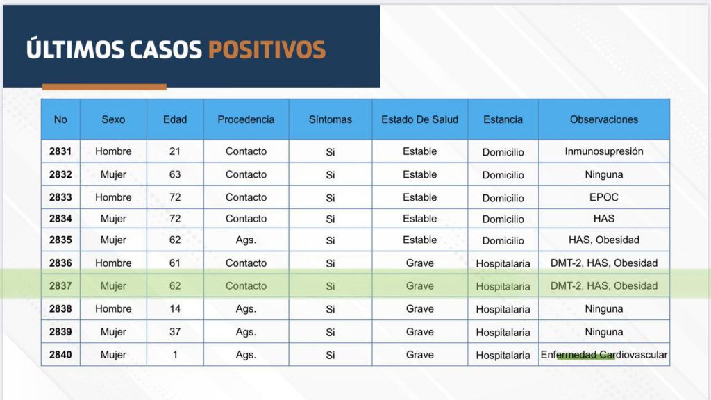 La cifras de personas que requieren de hospitalización en Aguascalientes por COVID-19 hoy suman un total de 109, de los cuales 53 pacientes son reportados en situación crítica, es decir, requieren de intubación para ayudarlos a respirar.