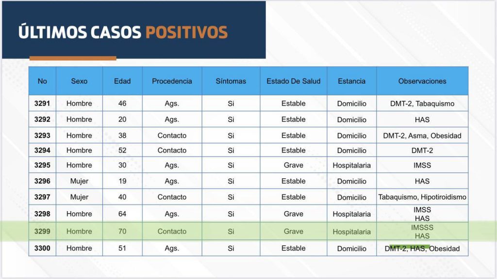 Aguascalientes suma 55 nuevos casos y 5 muertes más por Covid-19, al 6 de julio ya son 3 mil 391 contagios en el estado