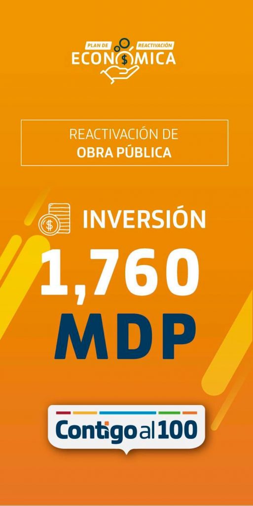 El sexto eje del plan, está relacionado con la reactivación de la obra pública en toda la entidad y se divide en dos rubros, el plan de obra pública que presentará en los próximos días la Secretaría de Obras Públicas, y los proyectos de rehabilitación y modernización en parques industriales públicos. En suma, ambos rubros suman un monto total de mil 760 millones de pesos.