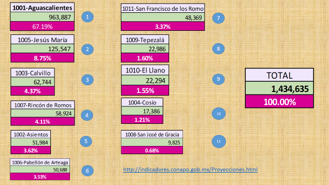La zona metropolitana de la ciudad de Aguascalientes alcanzó durante el 2020 un millón 130 mil 475 habitantes lo que representa el 80% de la población total del estado; la millonaria ZM abarca los municipios de la Capital, Jesús María y San Francisco de los Romo.
