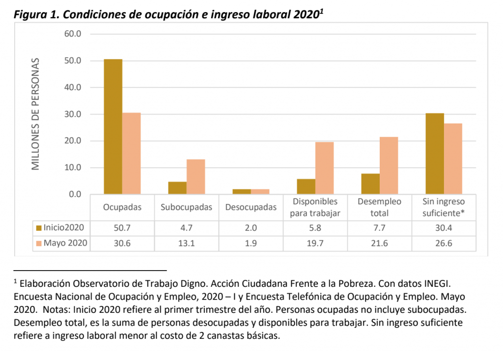 *Hay 26.6 millones de personas que aún trabajan, pero sin ingreso para familias de 2 personas. Representan 61% del total de personas ocupadas (incluyendo subocupadas).