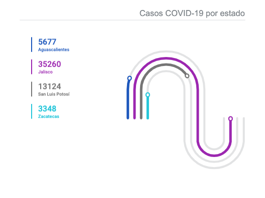 En LJA.MX con el fin de informarte día con día como vamos en la región Centro-Bajío te traemos en versión gif los casos por estado y muertes confirmadas de los estados de Aguascalientes, Zacatecas, San Luis Potosí y Jalisco.