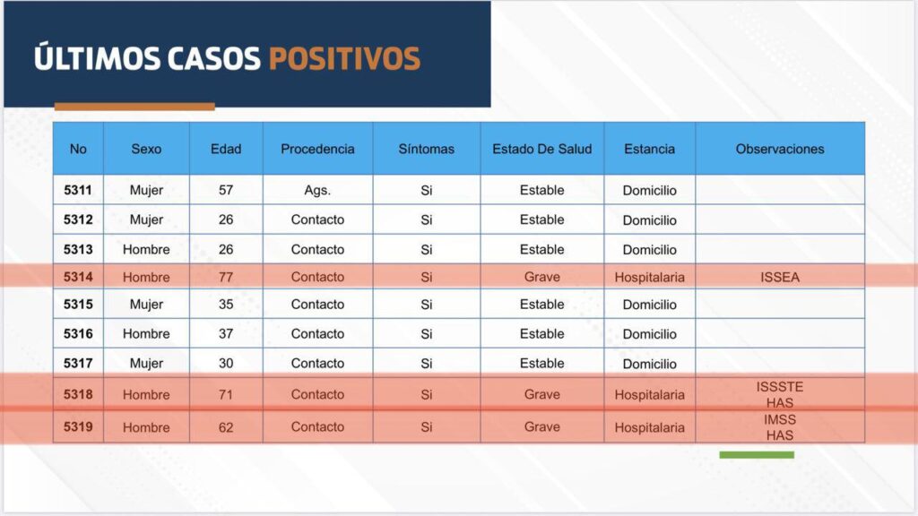 Con 5 nuevas muertes por COVID-19, Aguascalientes presenta hoy su tasa de letalidad más alta, al 3 de agosto son ya 5 mil 384 contagios y 295 muertes