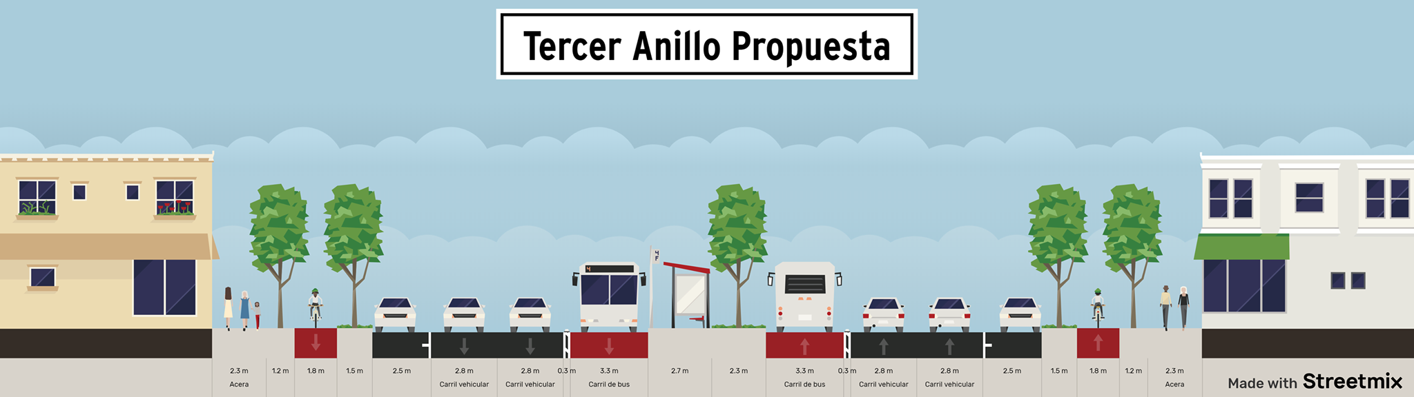 Tampoco estoy llamando a la peatonalización, la generosa sección oriente de Siglo XXI (con alrededor de 42 metros de ancho) nos ofrece muchas posibilidades de ser reconfigurada. Considero que esto es suficiente para que sin ningún problema se pueda dedicar un carril por sentido exclusivo al transporte público, así como ciclovía y banquetas anchas, con mobiliario urbano y arboladas. Con esto, también se verán simplificadas las circulaciones de los autos, pues no habría que compartir el carril de extrema derecha con camiones urbanos ni bicicletas, ni siquiera los otros carriles con los grandes tráileres que abundan en la vialidad. Podrían ver una de las propuestas conceptuales que elaboré en Streetmix. De hecho, estoy describiendo algo conocido en el mundo del urbanismo como una calle completa. El principio de estas es ofrecer espacios adecuados para la circulación de las personas en los distintos modos de transporte, algo en esencia democrático.