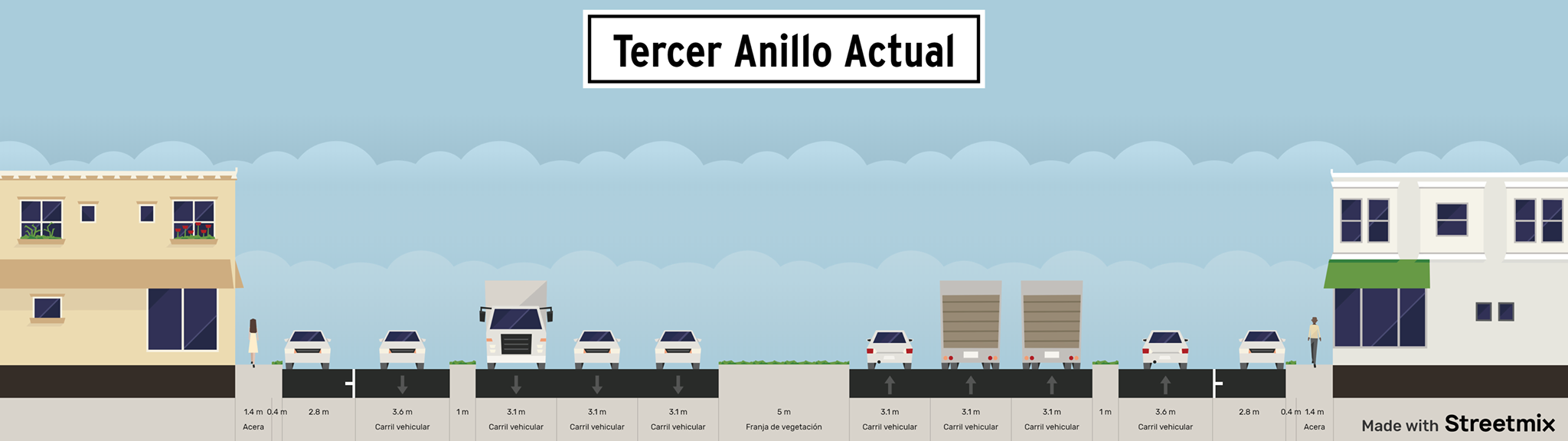 Si lo analizamos, muchos de los fragmentos de Tercer Anillo/Siglo XXI son contradictorios a las condiciones de esta misma avenida, algo que no debería de ser mucha sorpresa tampoco, pues hasta hace unos pocos años aún no se había urbanizado y simplemente era un libramiento vial. Hoy en día, Tercer Anillo oriente es una avenida comercial, de alta densidad de población y con una gran cantidad de usuarios de transporte público, quizá incluso llegando a ser el principal corredor de transporte público de la ciudad con la ruta 50. Sin embargo, el diseño del espacio público destina la mayor parte del espacio a los autos, a pesar de que las personas que se mueven en automóvil representan una minoría en la ciudad y especialmente en dicha vía.