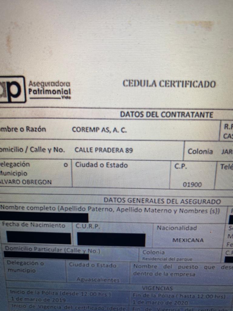 La ilegalidad del acto anterior, no sólo versa en la violación a un precepto Constitucional, sino que además, la contratación de dicho seguro era efectuada mediante la Asociación Civil A.C. COREMP AS, con el fin de operar un esquema de triangulación mediante el cual, el trabajador era obligado a firmar una póliza de seguro apócrifa a la Asociación Civil, quien a su vez, se presentaba como representante legal ante la Aseguradora Patrimonial Vida. Al mismo tiempo, al trabajador le era retenido por el Congreso una cantidad casi igual a $900 pesos mensuales, posteriormente dicha cantidad era entregada a la AC en comento, la cual, por cierto ya no existe, según las constancias que integran actualmente el portal digital del Registro Público de Comercio.