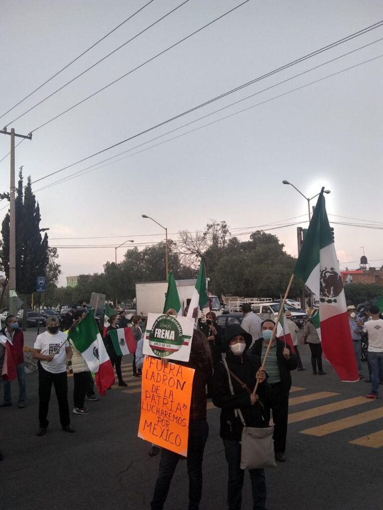 “López al penal, López Criminal”, gritaba una centena de personas simpatizantes al Frente Nacional Anti-AMLO (FRENA) afuera de la XIV Zona Militar.