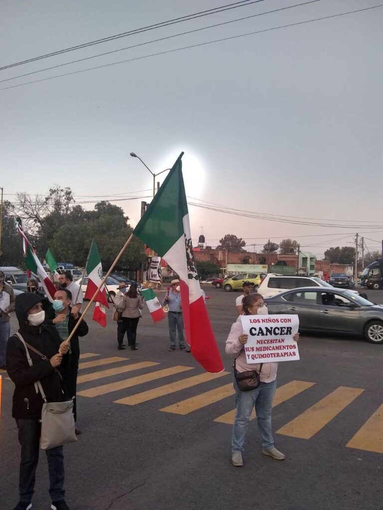Mientras tanto a las afueras, se manifiestan padres de niños con cáncer que demandan medicamento oncológico, provenientes del municipio de Rincón de Romos, representantes de 15 familias que podría perder sus viviendas por fallas geológicas y participantes de FRENA.