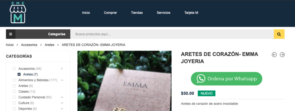 Una de las cosas que nos sorprendió gratamente fue la opción de poder ordenar por Whatsapp directamente con el vendedor. Tal y como lo dice la página la tienda EME sólo realiza la función de ser un enlace, una plataforma que ayude a muchas personas a encontrarse, a reactivar la economía.