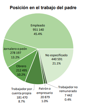 La posición del padre en el trabajo que más destaca es la de empleado, ya que representa el 45.4% (951 140) de los registros.