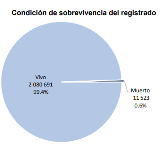 Fueron presentados vivos 2 080 691 registrados (99.4% del total nacional) y 11 523 (0.6%) fueron presentados muertos.