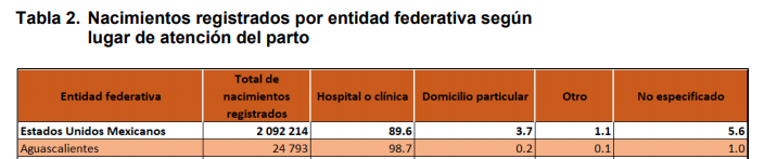 En Aguascalientes se registró el 98.7% de nacimientos en hospital o clínica.