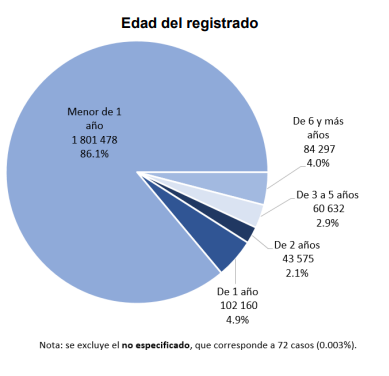 La edad del registrado más frecuente es la de menos de 1 año correspondiente al 86.1% de los registros; sin embargo, se tiene 4% de registro tardío con 6 años y más.