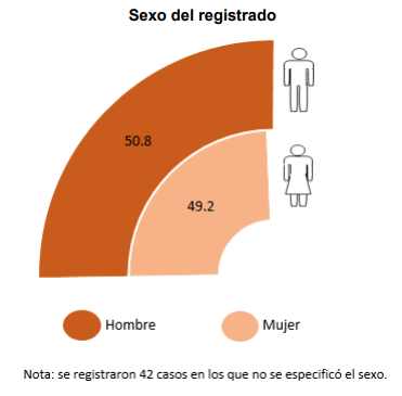 • Del total de personas registradas, 50.8% fueron hombres y 49.2% mujeres