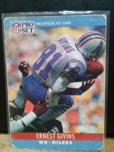 ¿Aún conservas tu primer objeto de colección? Yo sí, todavía conservo esa tarjeta, ya muy desgastada por el tiempo, pero de las más apreciadas de mi colección. En ella se muestra al receptor abierto Ernest Givins, y es de la marca Pro Set, del año 1990, una de las primeras marcas que se hicieron populares en México y que a principios de aquella década tuvo un auge notorio en el mundo del coleccionismo.
