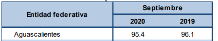 En Aguascalientes, la tasa de ocupación en septiembre del 2019 fue de 96.1% respecto a la población de 15 años y más; en 2020 fue de 95.4.