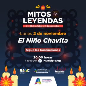 - Del 28 de octubre al 4 de noviembre, a través de las redes sociales del Municipio Capital, se transmitirán 8 videos con historias emblemáticas de Aguascalientes