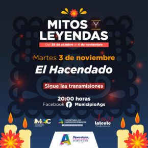 El programa “Mitos y Leyendas 2020: Sede in domo tua” (quédate en casa en latín), fue preparado en coordinación con el Instituto Municipal Aguascalentense para la Cultura (IMAC), y está conformado por 8 videos que se trasmitirán del 28 de octubre al 4 de noviembre en punto de las 20:00 horas en la página oficial del Municipio de Aguascalientes, en Facebook.