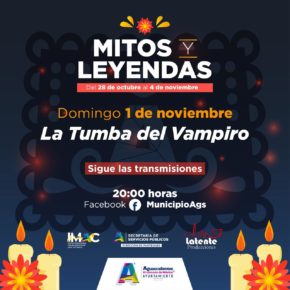 Como medida preventiva ante el brote de nuevos contagios de Covid-19 y para promover las tradiciones de Día de Muertos en el municipio de Aguascalientes, se presento el programa “Mitos y Leyendas” que este año se llevará a cabo de manera virtual, con un nuevo formato de representaciones teatrales grabadas en video, puesto que los panteones permanecerán cerrados durante estas fechas.