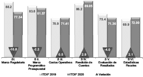De acuerdo con el Índice de Transparencia y Disponibilidad de la Información Fiscal de las Entidades Federativas (ITDIF) 2020 de la consultora @regional, en 2020 el promedio nacional fue de 78.40 puntos, en una escala de 0 a 100, son 1.53 puntos por debajo de 2019 (79.93 puntos) y su nivel más bajo desde 2014. Esta baja era una expectativa esperada, ante la situación sanitaria que se vive en el país por el Covid-19, dado que los estados han relegado la transparencia y gestión de la información fiscal en su escala de prioridades.