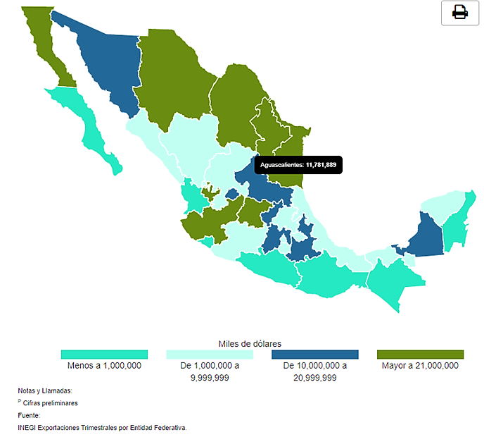 Exportaciones mexicanas según estados exportadores