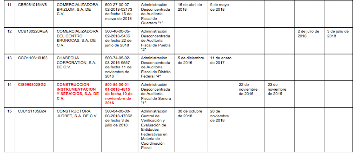 La compañía Construcción, Instrumentación y Servicios SA de CV también aparece desde 2016 en el listado de empresas “fantasma” elaborada por el SAT, pero, en 2019, la Secretaría de Comunicaciones y Transportes (SCT) le asigna más de 92 millones de pesos en dos contratos, ambos otorgados por la delegación con sede en Sonora. En uno de los casos, a pesar de tener al menos cinco propuestas más económicas, le fue adjudicado un contrato por más de 85 millones de pesos.